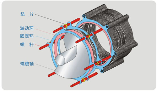 疊螺污泥脫水機(jī)的主體是由多重固定環(huán)和游動(dòng)環(huán)構(gòu)成,螺旋軸貫穿其中形成的過(guò)濾裝置。前段為濃縮部,后段為脫水部,將污泥的濃縮和壓榨脫水工作在一筒內(nèi)完成,以獨(dú)特微妙的濾體模式取代了傳統(tǒng)的濾布和離心的過(guò)濾方式。